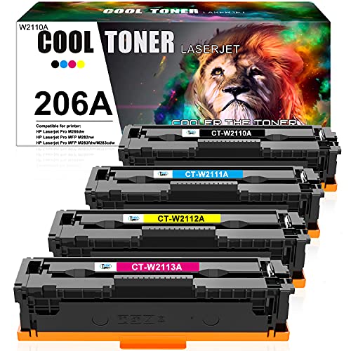 Cool Toner Compatible Toner Cartridge Replacement for HP 206A 206X W2110A W2111A W2112A W2113A Color Laserjet Pro M255dw MFP M283fdw M283cdw M283 M255 Printer Ink (Black Cyan Yellow Magenta, 4-Pack)